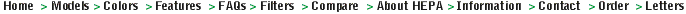 | Main page | Air purifier models | Replacement filters | FAQs | Features | Compare | Colors | About HEPA | Contact | Order | Letters | Site Map / Model Selection|