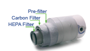 carbon and HEPA filtration in a fully portable unit. The cylindrical